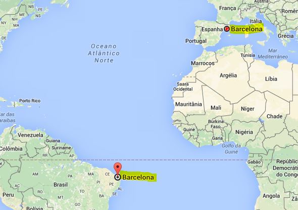 Barcelona (RN): Localizado no estado do Rio Grande do Norte, na região Nordeste do Brasil, a cidade possui 152 km² e fica a 86 km de Natal. Longe do mar, no sertão do estado.